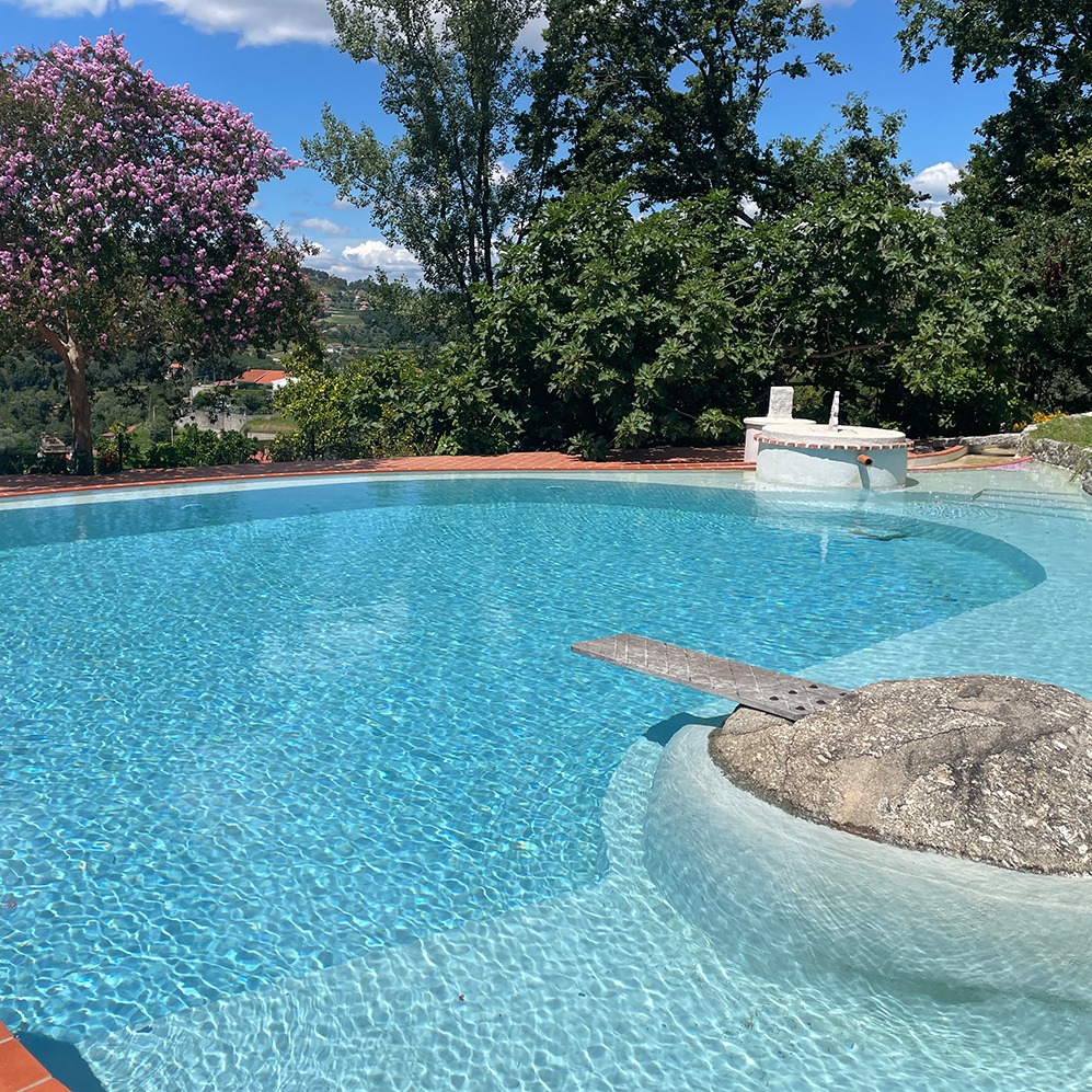 Uma nascente renova continuamente um espelho de água romântico, com bonitas vistas sobre