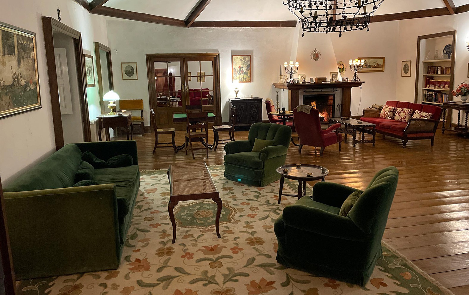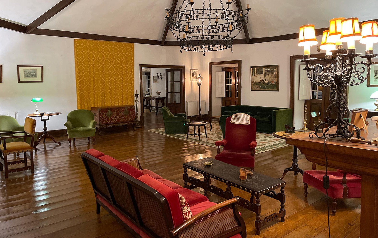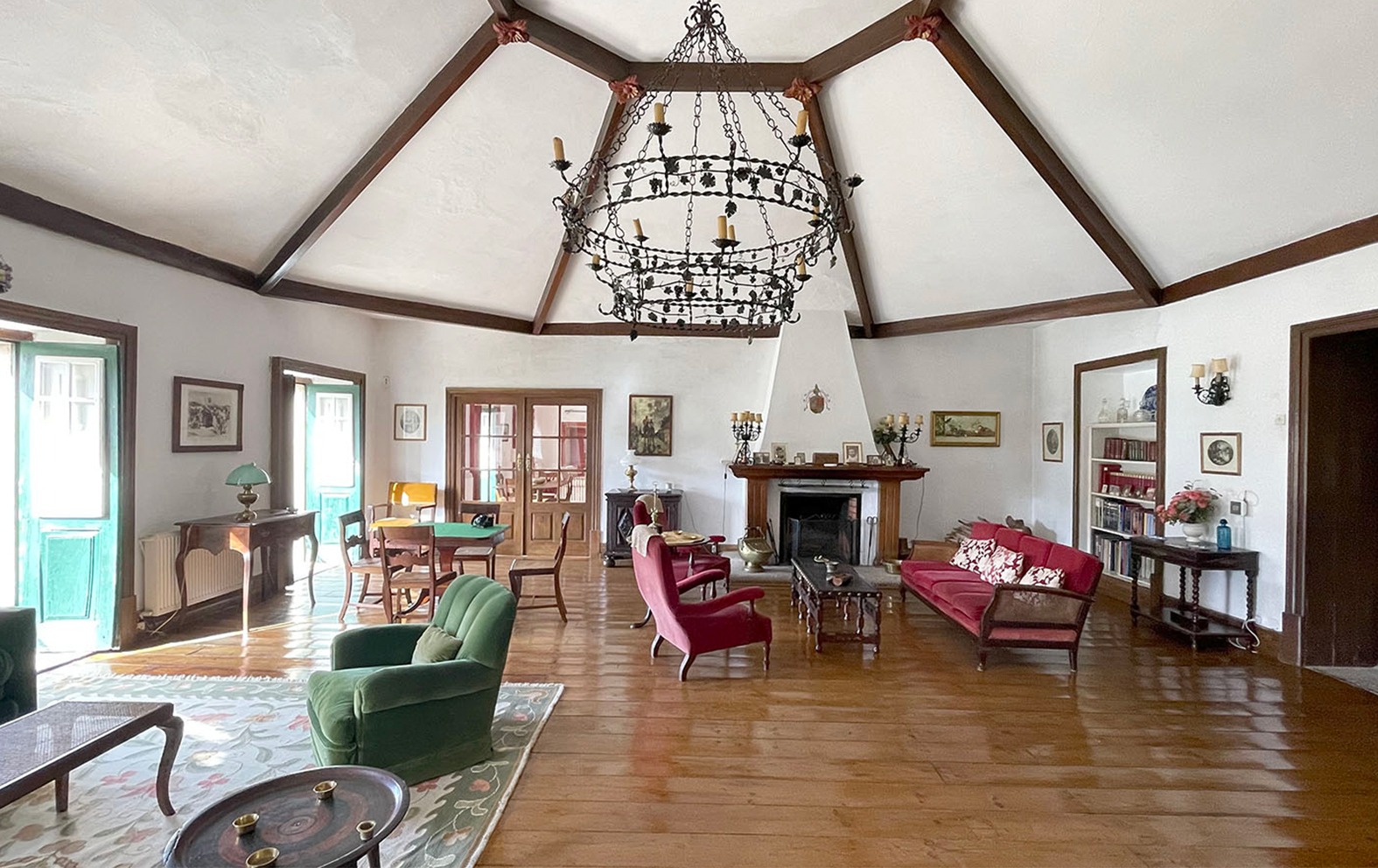Decorada com elegância, tem a excentricidade do teto octogonal, e uma lareira onde no inverno se concentram as conversas.