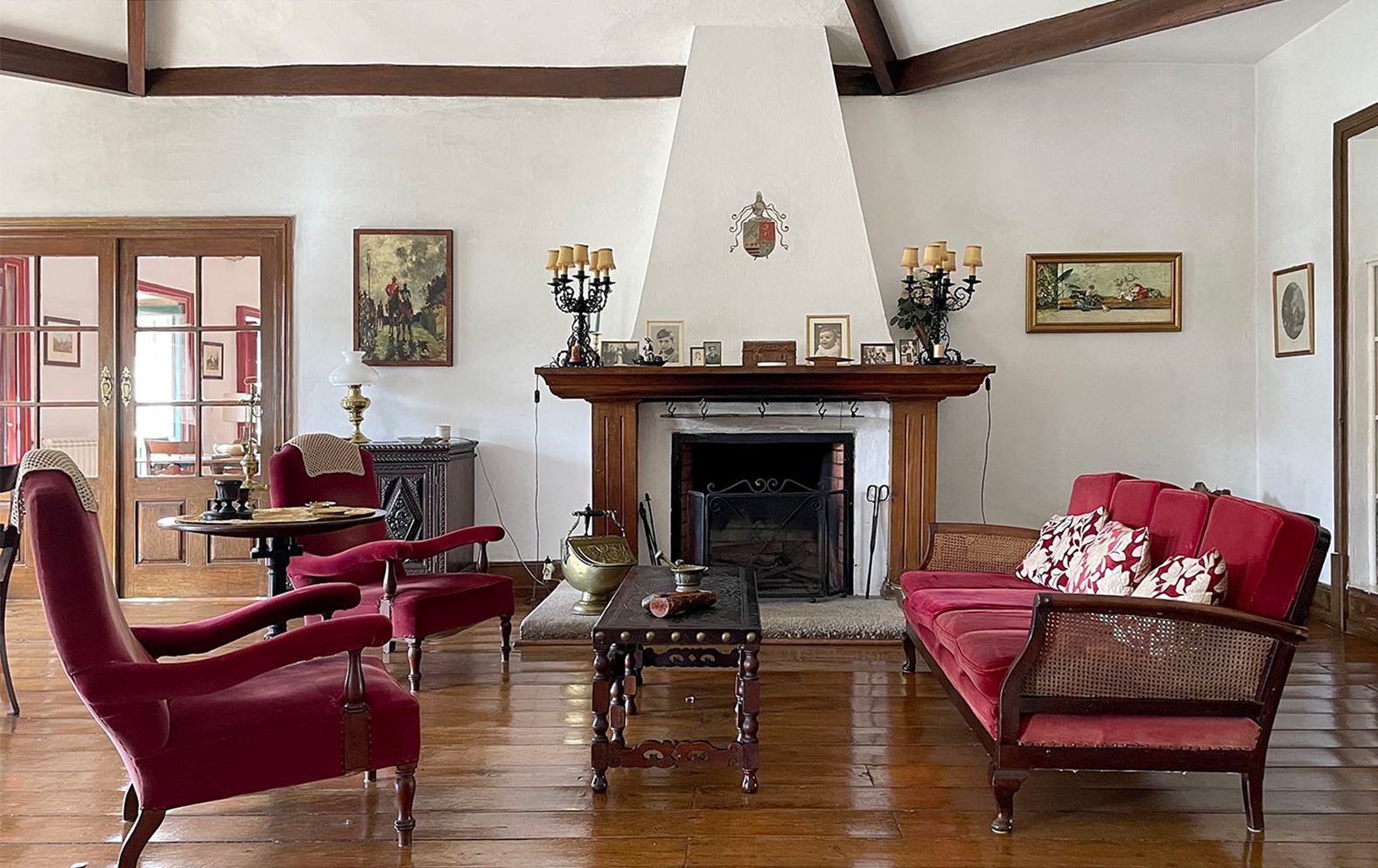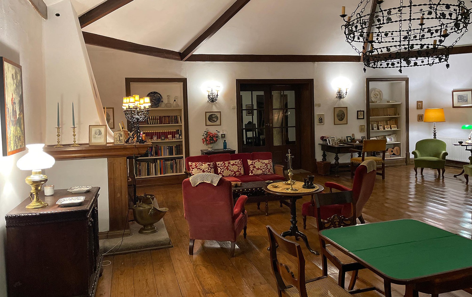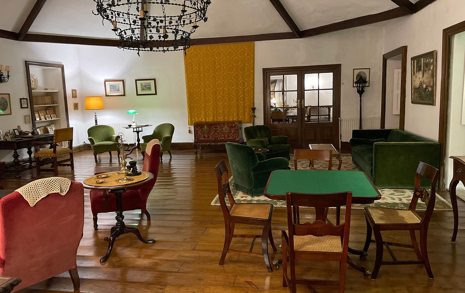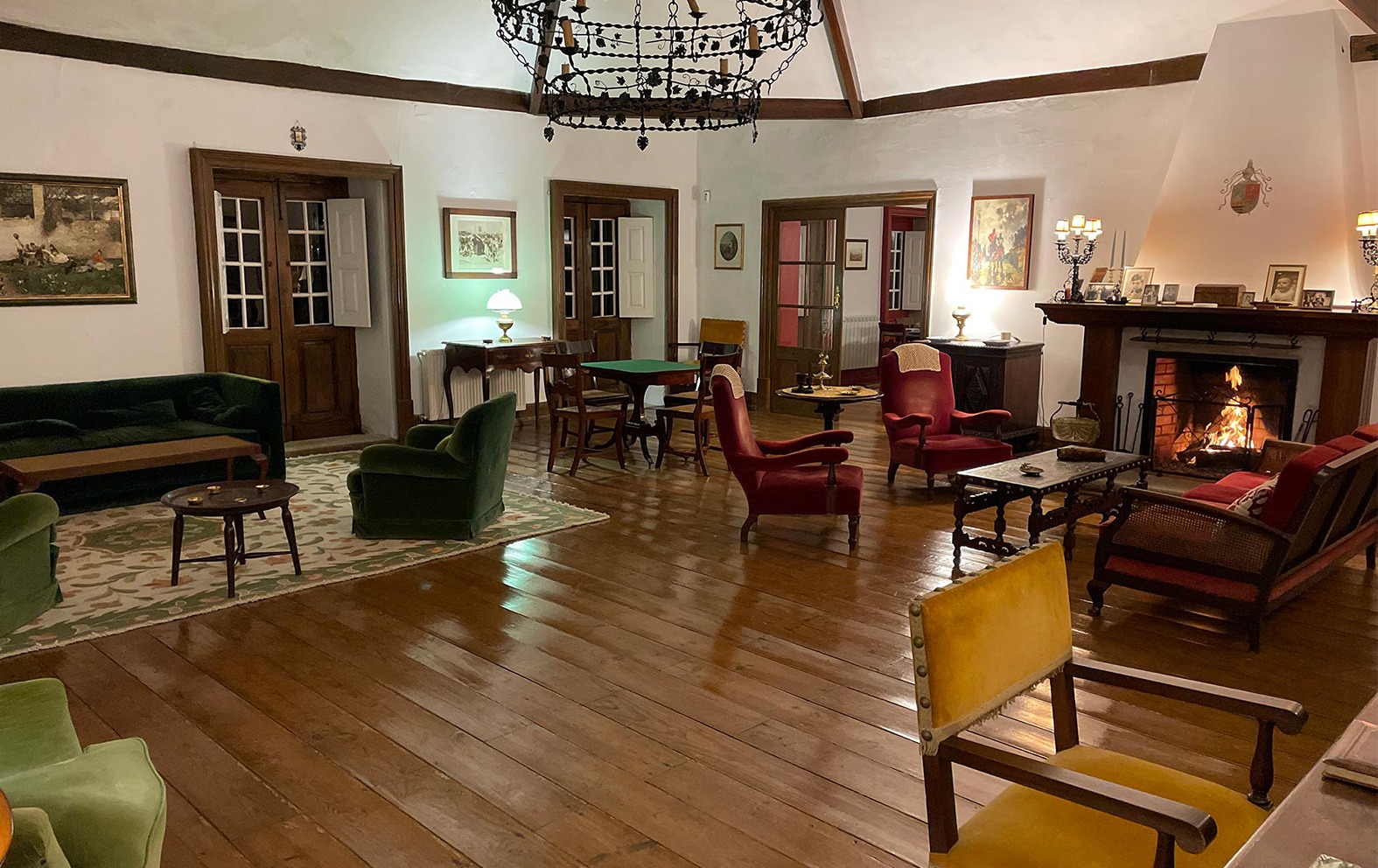 Decorada com elegância, tem a excentricidade do teto octogonal, e uma lareira onde no inverno se concentram as conversas.